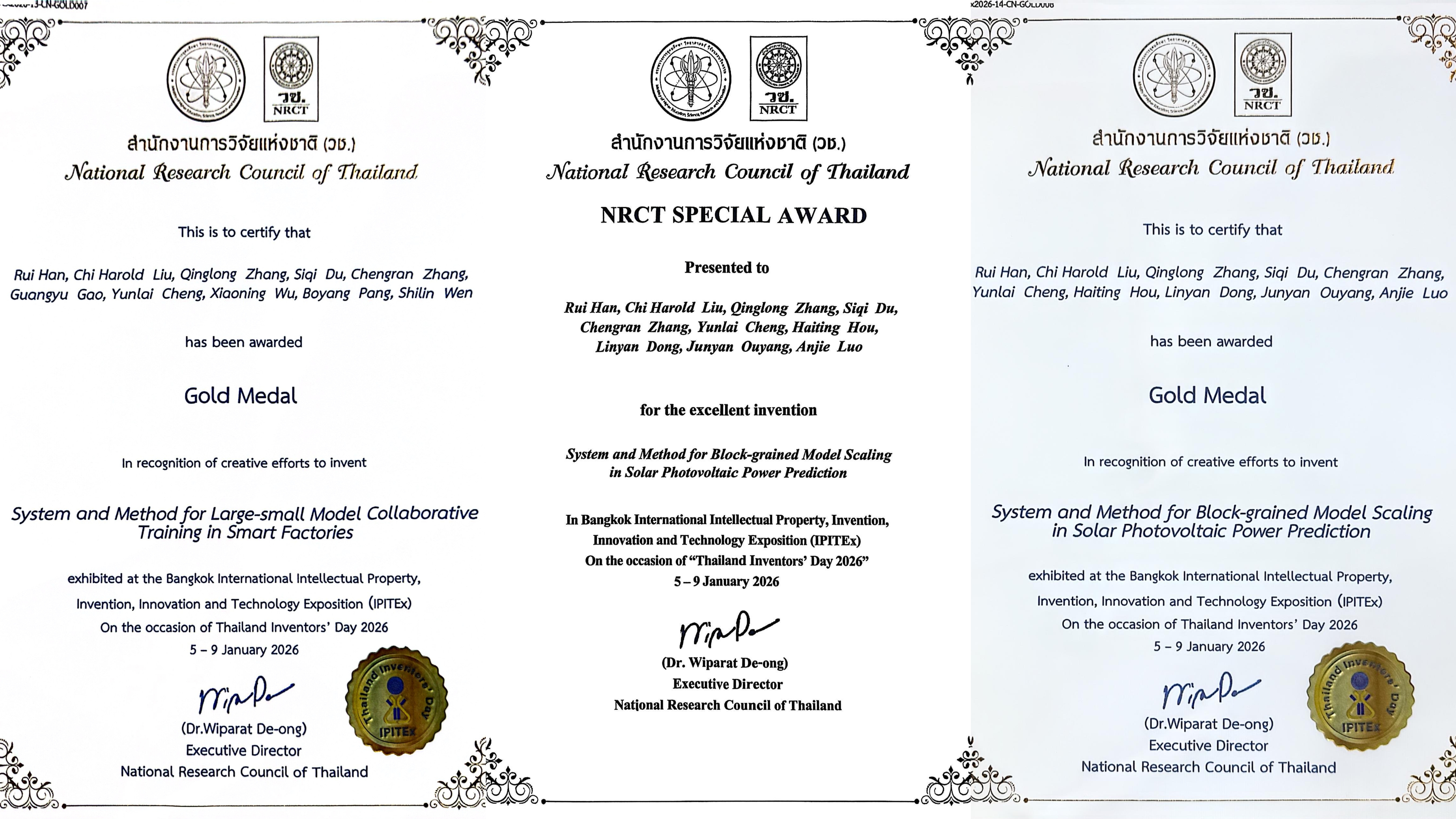 2026-01-12北理工betway西汉姆联官网刘驰教授团队斩获2026年泰国曼谷IPITEX国际发明展展会大奖、金奖 -