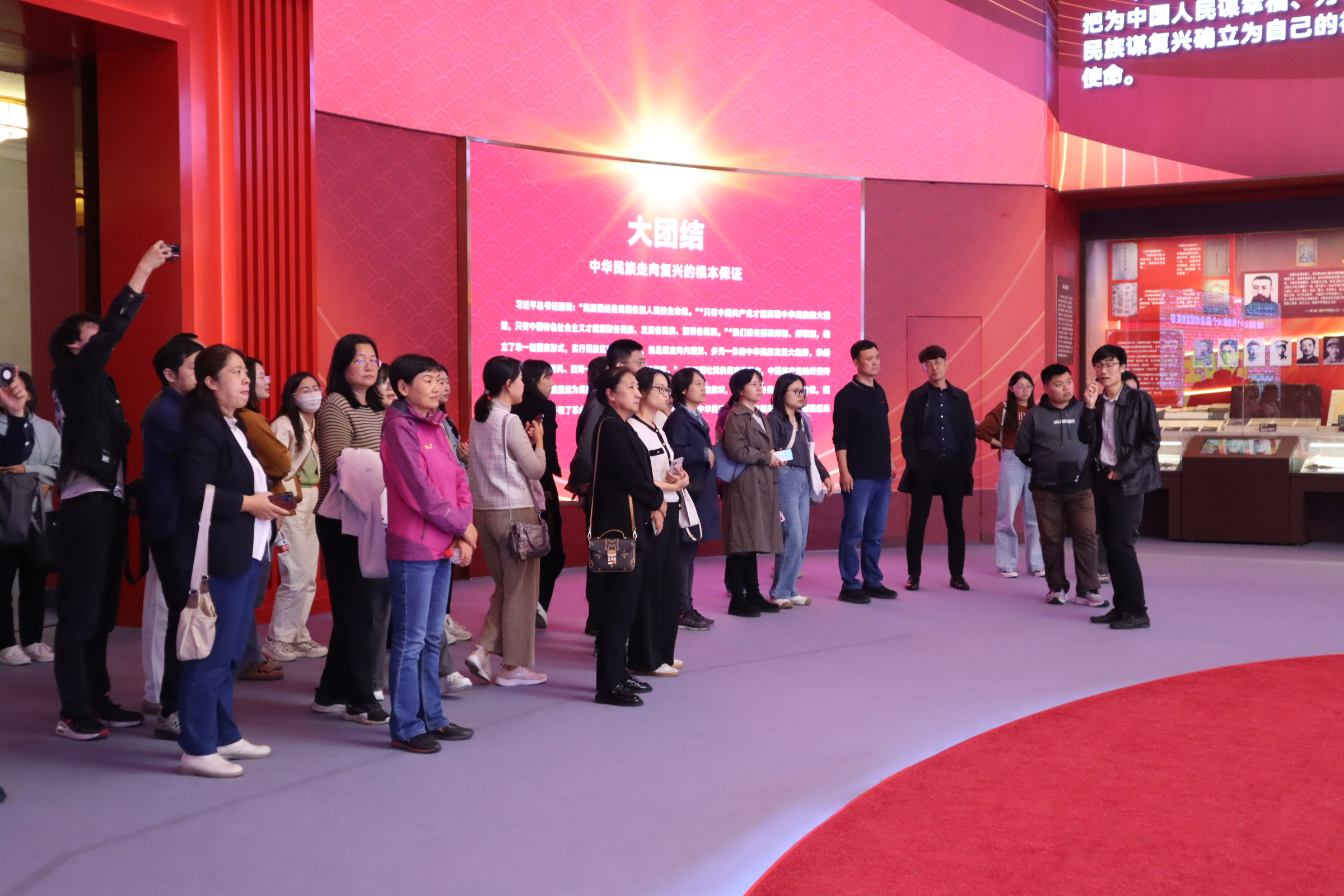 为深入学习贯彻党的二十届三中全会精神,深入贯彻落实习近平总书记关于加强和改进民族工作的重要思想和在文化传承发展座谈会上的重要讲话精神,2024年10月15日下午,betway西汉姆联官网由党委书记周连景带队,师生四十余名集体参观了北京民族文化宫“铸牢中华民族共同体意识文物古籍展”,近距离探访中华民族共同体形成发展的历史文脉赓续。